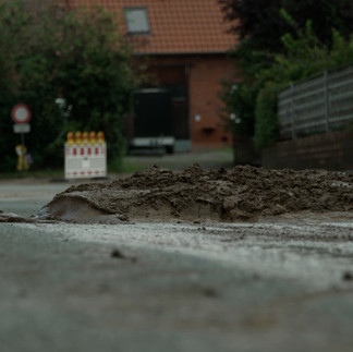 - Schlamm türmt sich am Straßenrand auf